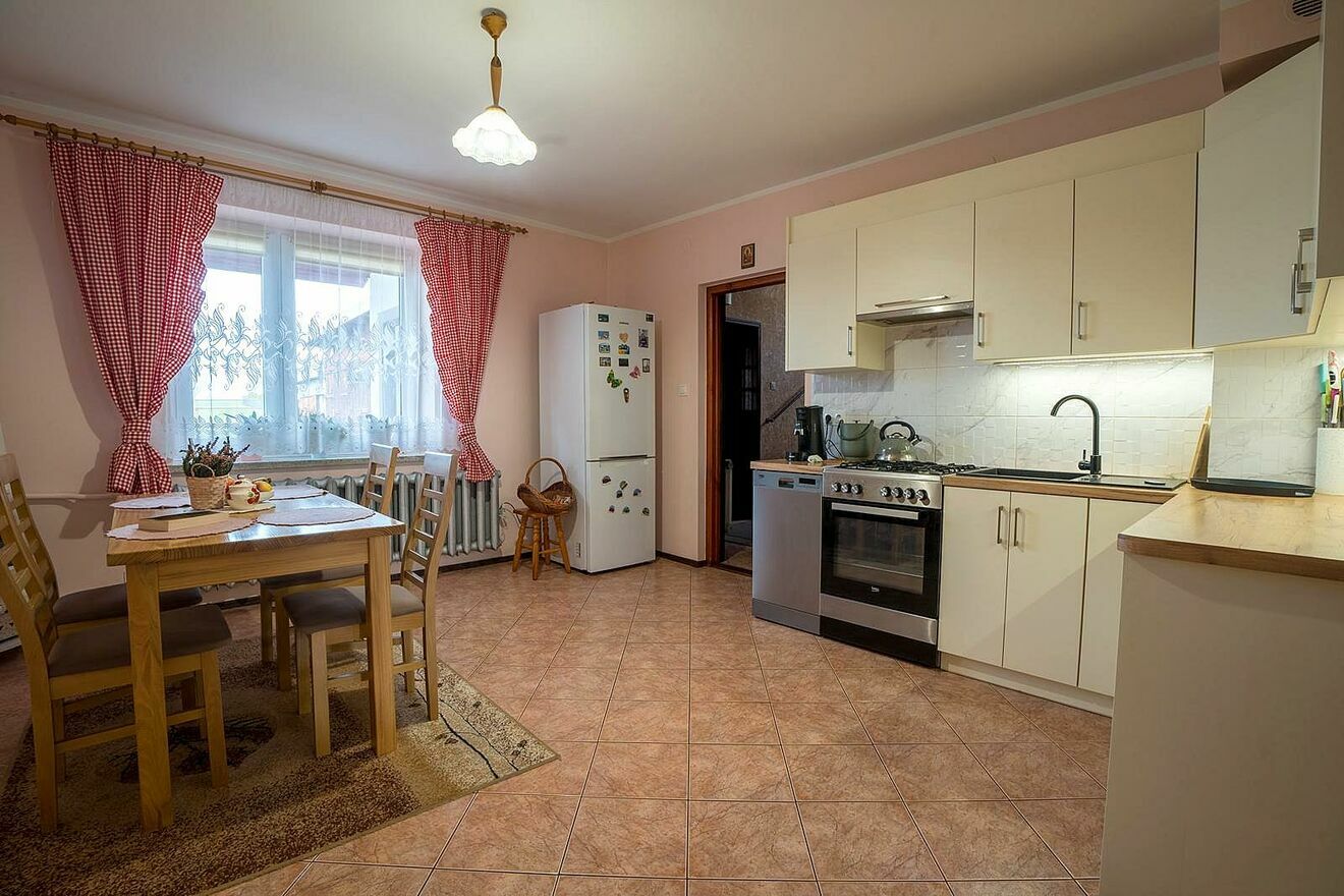 Rozkład pomieszczeń bardzo wygodny, idealny dla rodziny z dziećmi lub osób szukających przestrzeni i komfortu. Dom jest cały czas użytkowany, idealnie nadaje się do zamieszkania praktycznie bez większych nakładów pieniężnych gdyż jest sprzedawany z całym umeblowaniem i wyposażeniem widocznym na zdjęciach – wchodzisz i mieszkasz!